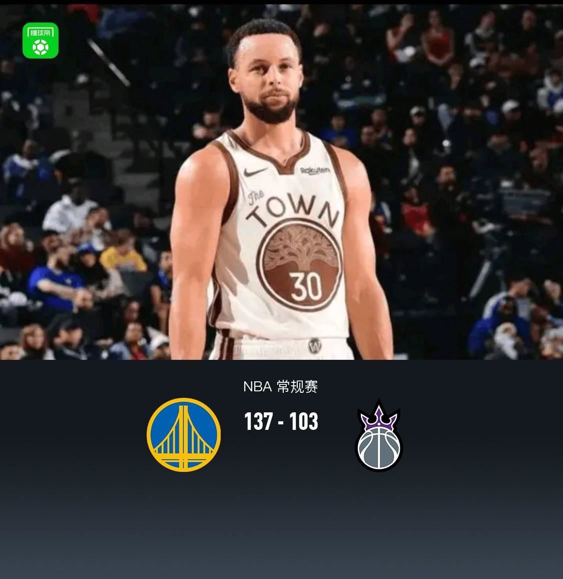 勇士137-103大胜国王,库里27+10,德罗赞空砍24分